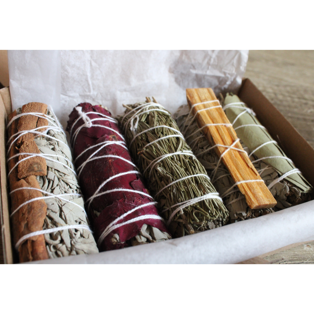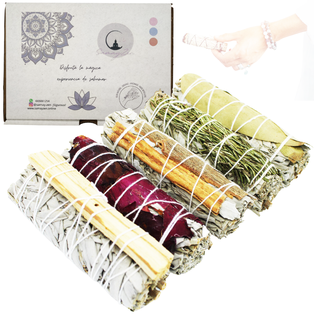 - Salvia Blanca con Pétalos de Rosa: Atrae amor y armonía, ideal para meditación y yoga.